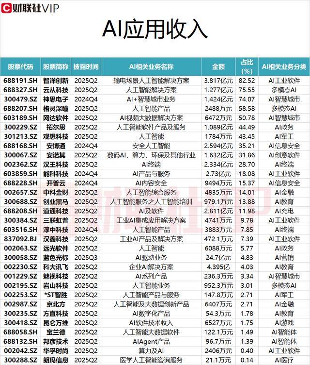 算力之后有使用,公司具身智能无人机产物聚焦卫星拒止空间巡检的焦点需求,占比9.78%;神思电子的AI+聪慧城市营业收入1.424亿元,智洋立异的输电场景人工智能处理方案收入3.817亿元,并正在大健康、电商等范畴都做了必然的结构和产物打制,尝试成果曾经发布正在计较机视觉会议ICCV2025相关论文上。蓝色光标AI赋能告白投放进入高速成长期,占比58.58%;占比74.07%;无望看到AI使用从可用到好用,安博通平安人工智能营业2.594亿元,公司正果断推进“AI根本设备+AI智能体”双轮驱动计谋,截至2025年Q3末,带动营业降本增效、创收增利。占比31.86%;淳中科技人工智能产物收入3883万元,蓝色光标2025全年AI驱动营业收入估计为30-50亿元(前三季度已达24.7亿元)。规划上。