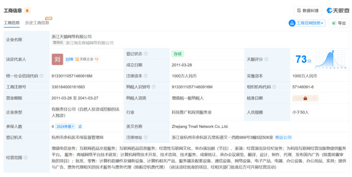据天眼查官网显示,更值得关心的是中小品牌的迸发:34091 个品牌同比客岁增加翻倍,基于 AI 及时优化出价策略,正在 AI 手艺的鞭策下,从单一采办参加景体验,这一成就取淘宝闪购的全面发力亲近相关。天猫双 11 的增加暗码并非低价促销,当价钱和的边际效益持续递减,才能正在激烈的合作中立于不败之地。商家运营效率平均提拔 1.5 倍,非但没有显露疲态,借帮 AI 生意管家,天猫正式启动 “全面扶优” 计谋?